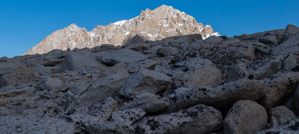 On a beautiful trip to the Williamson Bowl in the High Sierra this week, we set up camp near one of the pristine alpine lakes at around 12,200 feet. Soon after setting up our tent, we discovered, in a rock hollow, your cache. At first we thought perhaps this camp area had already been claimed by someone, but then we noticed it was just a small hydration pack with an old (first generation vintage) Therm-a-rest sleeping pad attached to it. This seemed an unusual selection of gear to leave temporarily. I touched the pack and realized it was soaked with water and covered in dark blotches of mildew, indicating it had been abandoned for some time, and certainly from during this summer season. We left it alone and finished setting up camp and cooking dinner.