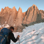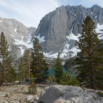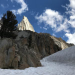 • Mt. Whitney is finally free of snow on the final approach to Iceberg Lake, but still a few hundred feet of unavoidable snow in the Mountaineer’s Gully.
