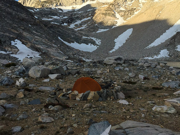 - N Face Hurd Peak, S Fork Bishop Creek at 10,300′ on 6/24