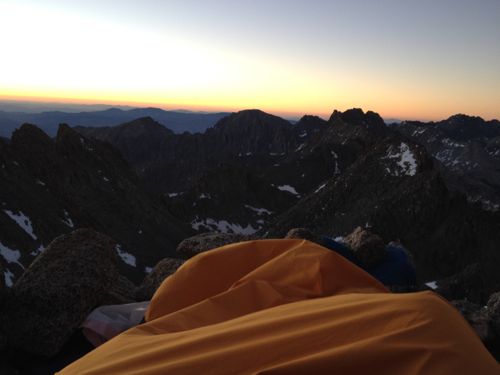 L-Shaped couloir on Mt. Sill is still snow. Crampons in the morning and softening by mid day.