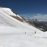 Alrighty, this is kind of a joke at this point, but I wanted to put a wrap on the backcountry report at some ridiculously late point in the summer. We stopped guiding the backcountry about a month ago. The irony is though that people are still getting out there and having fun. Sure, it’s summer, and you do have to hike those boards in a ways, but there are still a few places where the hike is not that far, such as: the Mammoth Crest, Saddlebag Lake area, Mount Dana, and others. Snow is finally starting to get a bit more textured by sun cups on the steep north slopes in some places. Any snow left on sunny slopes is pretty much hideous, but most of that has disappeared. After a crazy breakup and runoff transition this summer, the snow is finally beginning to age and the sun is getting lower in the sky every day. Temperatures remain very warm, and this is actually helping to keep the skiing good. At Mammoth Mountain, the conditions have been surprisingly outstanding. They plan to stay open for shredding in the mornings until August 6th with a few runs off of the top, Chair 23, and Chair 3. Great way to get out of the heat!