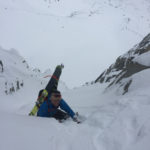 - topping out the N couloir on Mt. Gilbert May 6