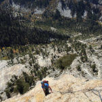 It was good that Alex had the wherewithal to contact me last week about a climb of Charlotte Dome over the Columbus Day weekend. We enjoyed comfortable temperatures, a kiss of westerlies, and all the gloriously textured and featured granite that one can dream of. Charlotte Dome captivated our entire day, stopping time like mug of hot coffee or a snifter of fine brandy, and our cups raneth over. This October, the month of harvest, we reaped peaceful rewards after a summer dominated by unsettling weather, fire, and drought. It was like climbing a warm, gigantic pumpkin. What could be more perfectly autumnal than that?