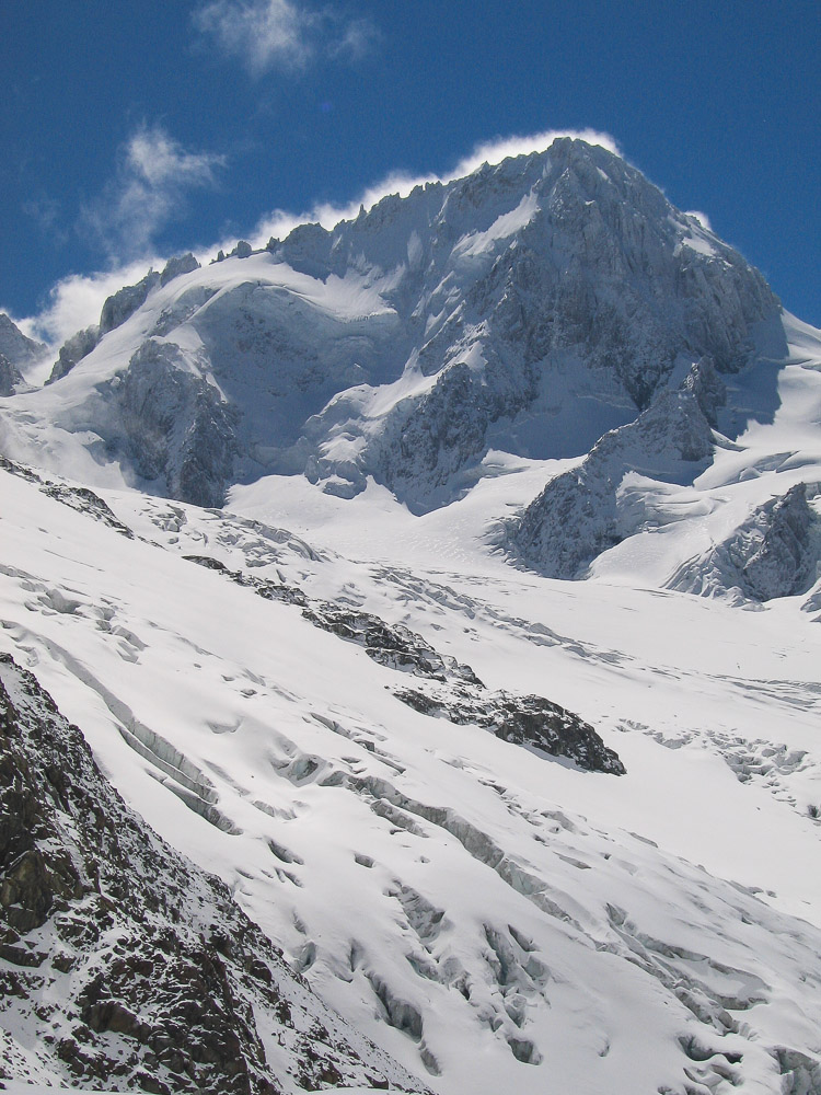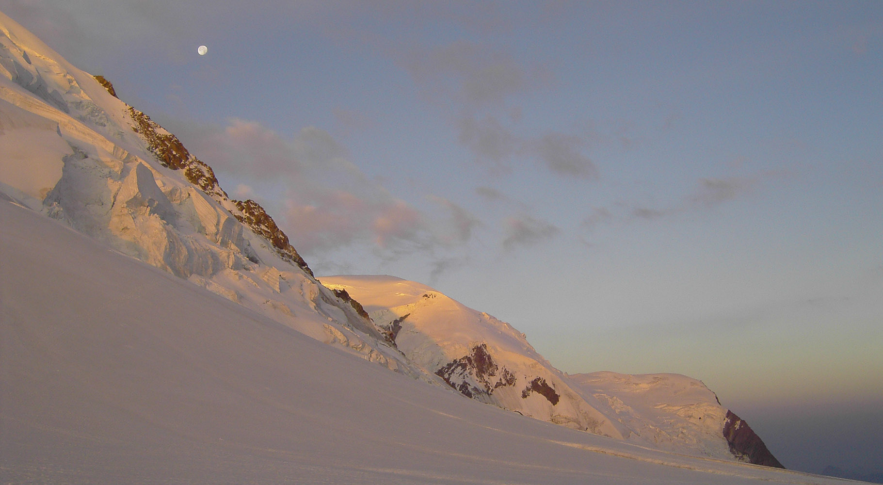 DAY 6-9 Our big climb of the trip. Some options include: Mt. Blanc via the Trois Sommets Traverse, the Gouter Ridge from the Tete Rousse Hut, or the Bionassay Traverse, the Grandes Jorasses, Mt. Maudit via the Frontier Ridge, Mont Blanc du Tacul, Aiguile de Moine, Aiguille d'Argentiere, Aiguille de Chardonnet, Chamonix Aiguilles, and many more. There is an extra day here to allow for rest or weather as needed, or to try something longer and more difficult if the group is capable.