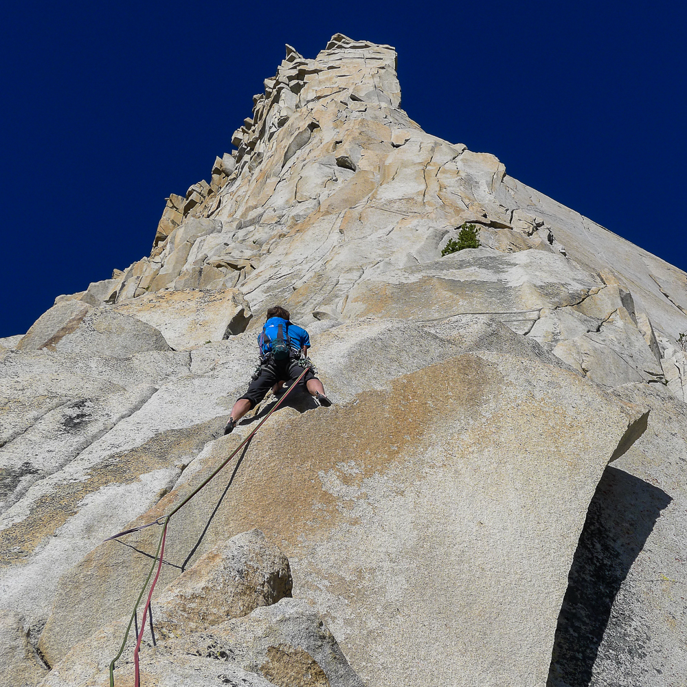 Sarah C. sends as usual on Cardinal Pinnacle Cardinal Pinnacle The most accessible piece of splitter alpine granite in the range. Climb 4-5 pitch routes consisting of classic cracks, stems, and flakes in the shadow of the Evolution Range above Bishop. Best Season: Spring, Summer, Fall
