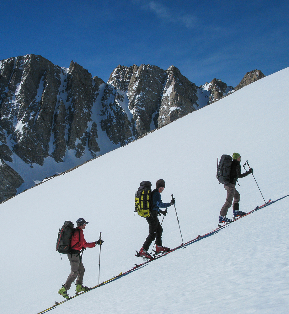 Want to ski Bloody Mountain or a day of powder skiing in the greater Mammoth area during your ski vacation? Maybe you want to do one of our classic hut trips like the Chamonix to Zermatt Haute Route or the Ortler Circuit with your own private group? How about a visit to a remote Alaskan lodge with a group of your closest ski friends? Or a Canadian heli-in hut-based skiing adventure? Or a Sierra spring ski mountaineering crest tour? The incredible ski options are limitless! Custom guided backcountry skiing and snowboarding is all about going where you want, when you want, and with who you want.
