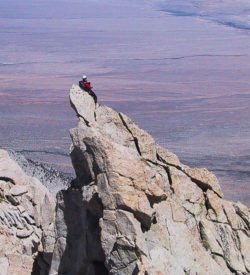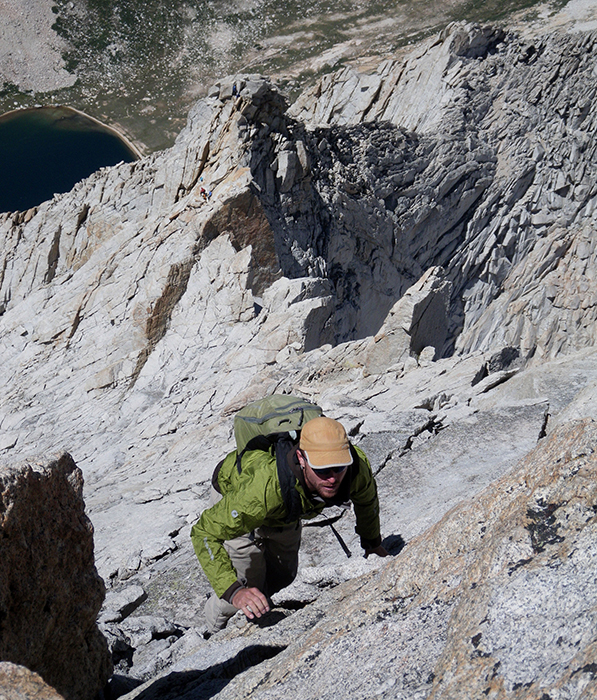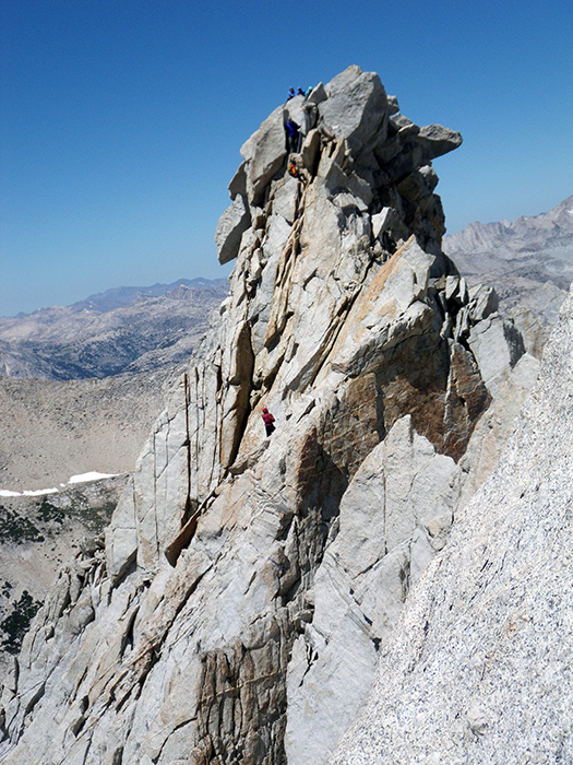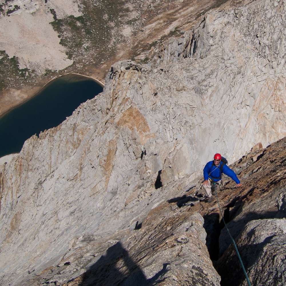 This climb serves up dramatic exposure at a moderate climbing grade. “This is one of the best routes in the Sierra backcountry,” according to climber, guidebook author, and SMG guide, Peter Croft.
