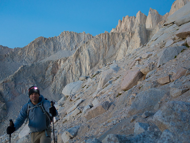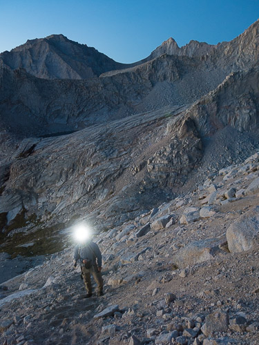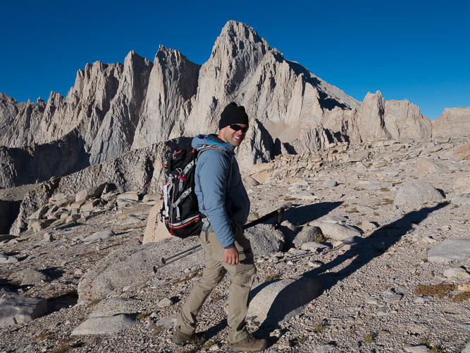 | DAY 1 | Meet for a gear check and hike up the adventurous North Fork of Lone Pine Creek. This day is strenuous and passes over the famed Ebersbacher Ledges before ascending to Lower Boy Scout Lake. From there, we continue up past Upper Boy Scout Lake and on to high camp, generally either at Upper Boy Scout Lake for the easier routes and Iceberg Lake for the more technical routes. |