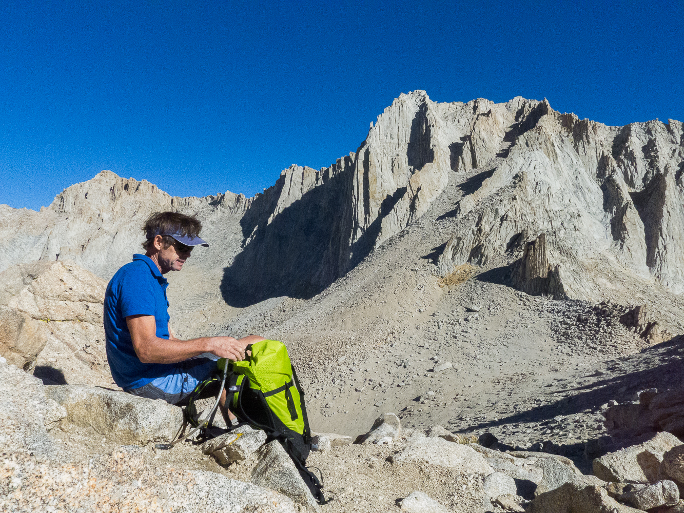 | DAY 2 | Climb Mt. Whitney to the summit by either the Mountaineer's Route (class 4), East Face (III, 5.6+) or East Buttress (III, 5.7). Descend via the Mountaineer's Route. Sleep at high camp. |