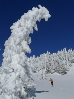 crusts and sugary facets. The winds have finally come to the range with the last storms where winds up to 120 mph were measured. This has smoothed out some sun effects and should help create some decent corn skiing in the coming weeks.