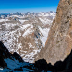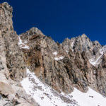 Most of these 14ers in California require some technical skills and gear to access them and their summits are often times remote, many miles from the nearest trailhead. There have been several occasions where guests of mine who have in the past climbed many or all of the Colorado 14ers have been humbled by the short list of California 14ers. That is not to say that all of the 14ers in California are challenging objectives. There are a few with trails right to the summit – such as Mt. Whitney that has an 11 mile circuitous trail that John Muir famously states was for soft, succulent folks. Mt. Muir has a short scramble from the Whitney Trail, and Mt. Langley and Mt. Russell are not too difficult or far off the beaten trail. The easiest to attain 14’er is White Mountain which has a road most of the way up the peak and an easy walk up a gated road to the summit. The High peaks of the Palisade group require at least 3rd class scrambling and often some wickedly exposed class 4-5 cruxes, not to mention and some navigation skills, solid preparations, and good mountain judgment. The Palisades are about as big as the entire Teton Range in Wyoming, and every bit as alpine.