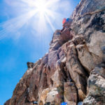 - Our team transitions at Thunderbolt Col with harnesses and Helmets as we warm up in the first sun rays of the morning.