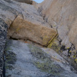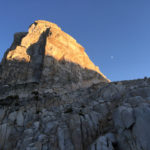 We launched on our first route, the Dihedral Route in early afternoon. From the ledge we tunneled through blocks to a fun stem move to access splitter hand and finger cracks on the right wall of the dihedral. In Secor’s guidebook, The High Sierra, he describes this 1974 route as following the corner of the dihedral, which may be enjoyable too, but I thought the splitters on the right were absolutely superb, if you don’t mind the thriving colony of foliose lichen living there. I really think a bit of traffic (and/or nut tool scraping) will clean these up to be super fun at around 5.10+. The climbing stays fun and engaging up the corner, though there is some looseness to give it a raw alpine feel. The money pitch is the awesome dihedral pitch that crescendos through a steep, right leaning dihedral at 5.10. Some fun but grainy climbing leads to the “big ledge” and from there the finish offers a most aesthetic appeal. We opted for the 5.8 hand crack to the top which did not disappoint, though the 5.10 fingers variant that splits off right looks like a must do as well. The summit is a 3 minute walk from there. There is a cairn on top, but no summit register that we found so it is hard to know how much climbing the Dihedral Route has seen over the years. Much of it felt pretty raw and wild, likely not dramatically different from when Rowell and crew checked it out over 40 years ago. Very enjoyable and well protected route with comfy belay ledges and a recommended experience overall. The descent took us around an hour back to camp and we reveled in the sparkling early evening light that faded just perfectly as we arrived for dinner.