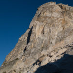 In the Sawtooths, The Juggernaut is situated across a ridgeline from the Hulk, the two eyeing each other from 2.5 miles away. It is the minor peak on the north Yosemite Park boundary that divides Mule Pass from Rock Island Pass. Its north face is steep and imposing at around 750 feet tall in the steeper parts. This formation was first climbed in 1973 by a team that included the legendary Fred Beckey and Jack Roberts. Their route was rated 5.9 A2 and went up the center of the face. From climbs on either wall the other can be easily seen. The profile of The Juggernaut looks a lot like the shape of the helmet of its namesake comic villain. The second route that went up on Juggernaut was done the following year, 1974, by a team that included Sierra climbing greats Galen Rowell and Vern Clevenger. It wasn’t until the year 2000 that another team went up to explore a new route on the face. Again, Dave Nettle was a part of establishing a line they called Irresistible Force (III, 5.10+). This line may have been lost to obscurity if not for a pair of local Eastern Sierra climbers (and friends of Nettle) Jim Barnes and Nate Greenberg. Last year the pair established 3 more lines on the face. Being good friends with both of these guys, I heard the stories and saw the photos. They intrigued me…